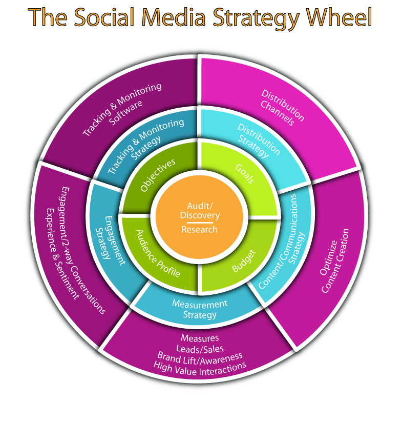 The time you spend on your strategic planning is a direct reflection of your program results. In the spirit of good planning, here are five important areas, based on the Social Media Strategy Wheel, to demonstrate how social media can be used for deeper intelligence and more relevant communication. So, hold off on the tweets, Facebook updates, Instagram posts and snaps on Snapchat (the communication tactics) until you address social media by using it as a part of your planning process:
