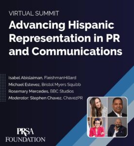 Chavez, president of ChavezPR, a certified LGBT Business Enterprise, is a board member of the PRSA Foundation and sits on the PRSA DEI Committee. He moderated an Oct. 8 virtual panel discussion titled “Advancing Hispanic Representation in PR and Communications,” held in partnership with PRSA’s DEI Committee and its PRSA Hispanic-Latino Affinity Group as part of Hispanic Heritage Month.